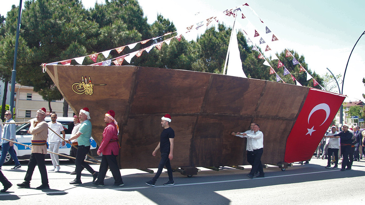 Ordu'da, İstanbul'un Fethi'nin 572. yıl dönümü dolayısıyla düzenlenen programda, 10 metre uzunluğundaki maket gemi karadan yürütüldü.