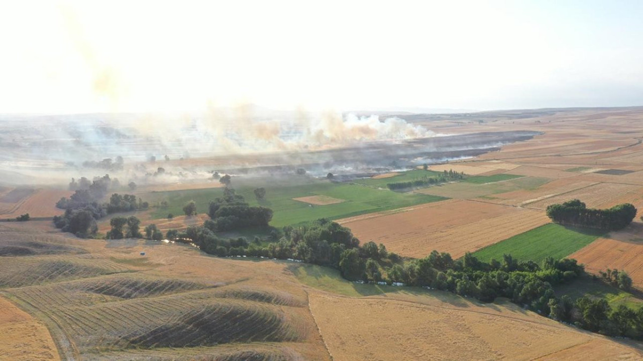 Yangın sonucunda tahminen bin dekarlık buğday ekili alan zarar görmüş durumda.