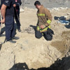 Köpeği fark eden çevredekiler durumu itfaiye ekiplerine bildirdi.