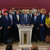 CHP Grup Başkanvekili Engin ÖzkoçveÖzgür Özel ile İYİ Parti Genel Sekreteri Aytun Çıray,CHP'den İYİ Parti'ye geçen 15 milletvekiliyle Mecliste basın toplantısı düzenlediler.