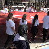 Öğretmenlerin öğrencileri sakinleştirmesinin ardından, yürüyüşe katılanlar Atatürk Anıtı önünde hep birlikte saygı duruşunda bulunup, İstiklal Marşı'nı okudu. Anıta çelenk sunulmasının ardından tören sona erdi.
