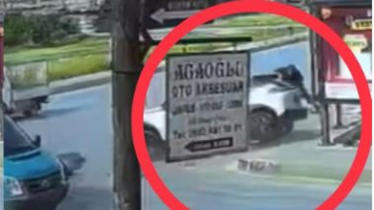 Feci kaza çevrede bulunan bir güvenlik kamerasına saniye saniye yansıdı. Görüntülerde iki aracın çarpışmasıyla savrulan otomobilin yayaya çarpma anları yer aldı. Görüntülerde kazadan saniyeler öncesinde ise aynı noktadan dönen 2 kişinin olduğu motosikletin de son anda kurtulması dikkat çekti.