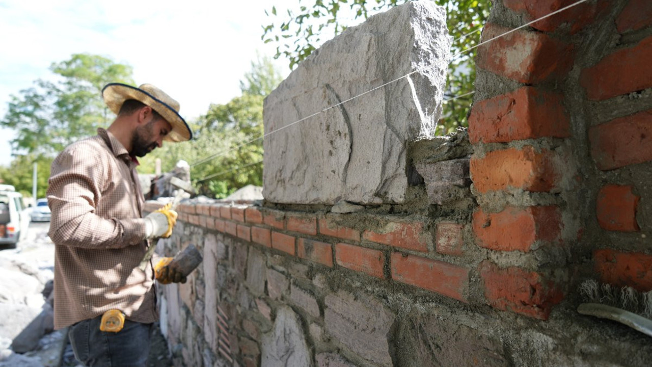 5 yıldır taş duvar ustalığı yapan Cevdet Akar, “Taşlar makineden geçmediği için biz elle yapıyoruz. Taşı istediğimiz şekle sokuyoruz. Bizim işimiz bu” şeklinde konuştu.