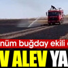 Yangında 200 dönüm buğday ekili alan ile arazi içinde bulunan bir kamyon tamamen yandı.