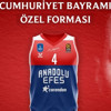 Ulu Önder Mustafa Kemal Atatürk''ün imzası ile bayrağımızın renklerinin de yer aldığı formayı Anadolu Efes oyuncularının yanı sıra Anadolu Efes''in sevilen maskotu Çaylak da giyecek.