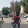 Karabük'ün Safranbolu ilçesinde yaşanan tehlikeli bir yolculuk, cep telefonu kamerasına yansıdı. Bağlar Caddesi'nde plakası olmayan bir motosikletle seyahat eden sürücü ve arkasındaki kasksız yolcu, boyları 3 metreyi bulan çıtaları kucaklayarak taşırken görüntülendi.