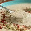 - Çorbanın terbiyesi için bir kapta yoğurt, yumurta sarısı limon suyu ve unu ekleyip çırpın.