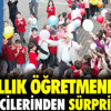Gördüğü manzara karşısında duygulanan öğretmen, öğrencileri ile tek tek vedalaştı.