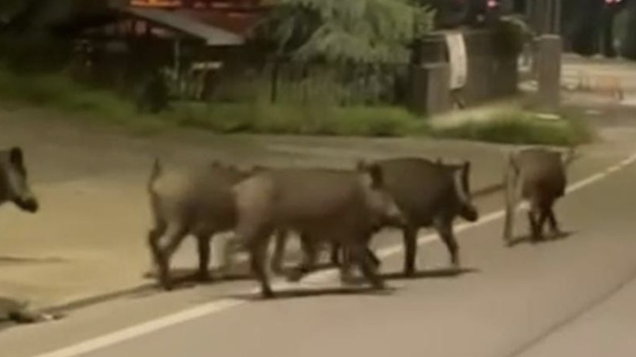 Rize’nin Güneysu ilçesinde, aç kalan 5 yaban domuzu yiyecek aramak amacıyla ilçe merkezine kadar indi. Yaban domuzları, Güneysu-Rize karayoluna girerek bir süre karayolu üzerinde koşturdu. Domuzların bu alışılmadık davranışı, yoldan geçen sürücüler ve çevredeki vatandaşların dikkatini çekti