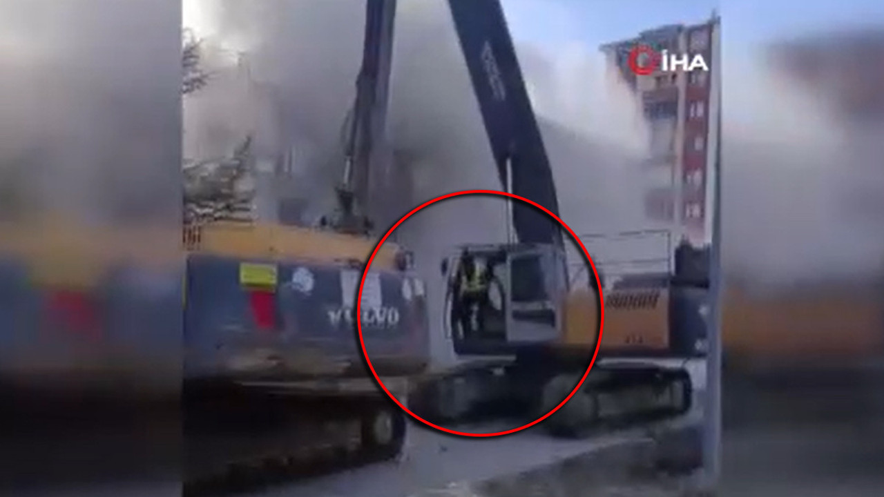 Olay, merkez Sürsürü Mahallesi Kanalboyu bölgesinde yaşandı. 6 Şubat 2023'te Maraş merkezli depremlerde ağır hasar alan 5 katlı binanın yıkımı için bölgeye kepçe yönlendirildi. İş makinesinin yardımı ile başlayan yıkımda bina, kepçenin tek dokunuşu ile yerle bir oldu. Kepçe operatörü, yıkımda fırlayan taş parçalarından araçtan atlayarak kurtulmaya çalıştı. O anlar, cep telefonu kamerası ile kaydedildi.