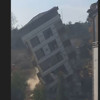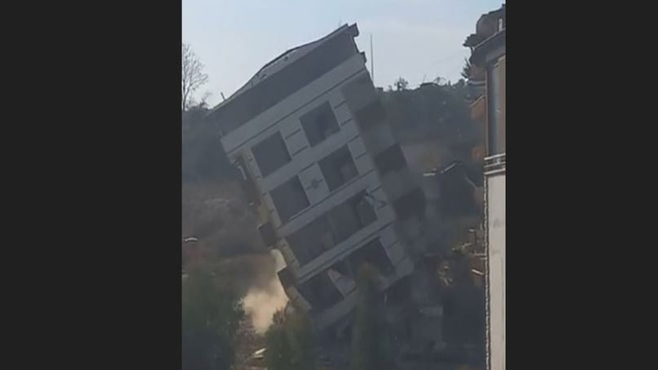 Defne ilçesi Çekmece Mahallesi'nde bulunan 6 katlı bina, iş makinesiyle kontrollü olarak yıkıldı.