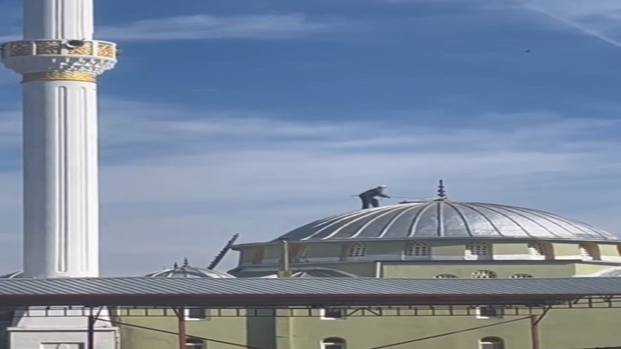 Yıllardır Endiz köyünde yaşayan ve çevresinde saygı duyulan bir kişi olarak bilinen dede, leyleklere yuva yapmak için caminin kubbesine tırmanarak cesur bir adım attı.