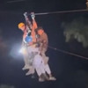 Kurtarma ekibinin yayınladığı videoda, teleferikte mahsur kalan bir çocuğun kendilerini kurtarmaya gelen helikopterden halatın ucuna bağlı olarak sarkan görevlinin kucağına atladığı görüntüleri yer aldı.