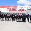 Antalya Havalimanı''nda çiçeklerle karşılanan ay-yıldızlı kafile, Türk Hava Yolları''nın 19 Mayıs Atatürk’ü Anma, Gençlik ve Spor Bayramı''na özel hazırladığı "Tarihi Forma" üzerinden bilgilerini ileten herkesin ismi ile üzerinde milli futbolcular ve teknik direktör Şenol Güneş''in isimlerinin de yer aldığı uçağın önünde fotoğraf çektirdi.