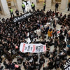 ABD'nin başkenti Washington DC'de, İsrail'in Filistin'e yönelik saldırılarına tepki olarak "ateşkes" talebiyle düzenlediği protestoda göstericiler, Kongre'de oturma eylemi yaptı.