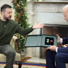 Rusya ile şiddetli çatışmalara sahne olan Donetsk bölgesindeki Bakhmut kentine dün bir ziyaret gerçekleştirdiğini hatırlatan Zelenskiy, bir yüzbaşı tarafından Biden’a gönderilen askeri madalyayı takdim etti. Biden ise Zelenskiy’nin hediyesi üzerine kendi geleneklerinden bahsederek Zelenskiy’e özel demir paralardan hediye edeceğini belirtti.