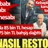 Adana kebap, yağlı kara, küşleme ve kanat yiyen Abramoviç ve arkadaşları, uzun süre sohbet etti. Abramoviç, 85 bin TL hesap öderken garsonlara 175 bin lira bahşiş verdi.