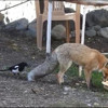 Tilkinin karga ve kediyle olan yiyecek kavgası cep telefonu ile anbean görüntülendi.