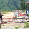 Beldenin değişik yerlerinde parkular oluşturan gençler, otomobil lastiklerinin içinden atlıyor, birincilik için engelleri aşmaya çalışıyor.