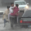 Otomobiliyle seyir halinde olan bir sürücü de yolda mahsur kaldı. Mahsur kalan kişi, aracın içerisindeki çocuklarını çıkartarak güvenli bir bölgeye yöneldi.