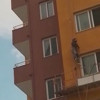 Güvenlik kemeri sayesinde havada asılı kalan işçiyi apartmandaki başka bir kişi pencereden içeri aldı.