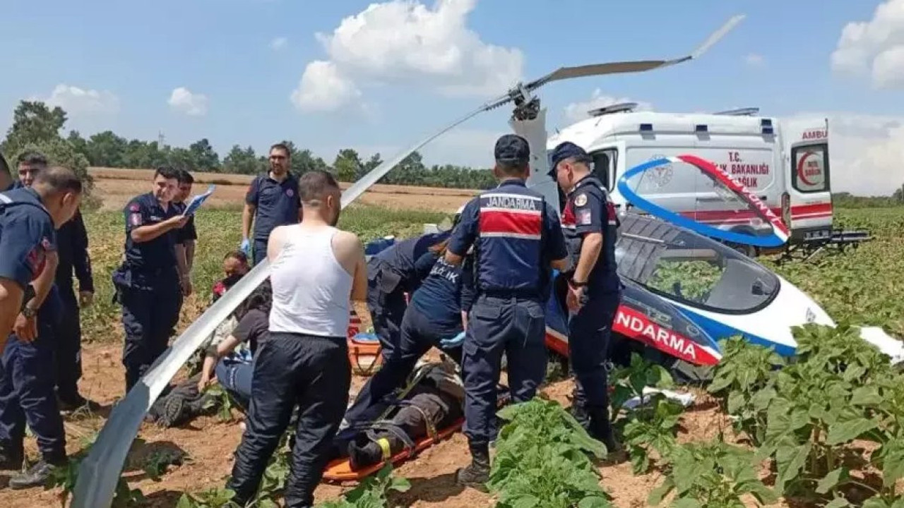 Adana'nın merkez Sarıçam ilçesinde, jandarmanın cayrokopteri araziye sert iniş yaptı.