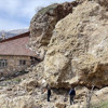 Köyün, fay hattının geçtiği arazilerinde oluşan yarıklar ve dağdan kopan dev kayalar, depremin boyutunu gözler önüne seriyor.