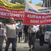 Adıyaman'da cami çıkışında toplanan vatandaşlar, "Mülkiyeti mahallemize ait olan Kur'an kursumuzu geri istiyoruz" ve "Kendi imkânlarımızla yaptığımız Kur'an kursumuzu derneklere peşkeş çektirmeyiz" yazılı pankartlarla Kahta İlçe Müftülüğüne yürüyerek basın açıklaması yaptı.