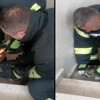 İtfaiyenin kediyi kurtarma anını vatandaşlar cep telefonu ile görüntüledi.