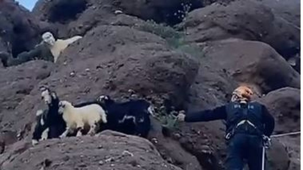 Uludere Köyü kırsalındaki dağlık arazide sahibi tarafından otlamaları için bırakılan 6 kayalık alanda mahsur kaldı. Sahibi oğlakları indiremeyince durumu ihbar etti.