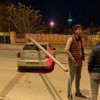 Savrulan araç yol kenarındaki aydınlatma direğine çarptı. Çarpmanın etkisi ile direk aracın üzerine devrildi.