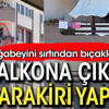 Daha sonra kendisini eve kilitleyen genç balkona çıkarak izleyenlerin gözü önünde harakiri yaptı ve ağır yaralandı.