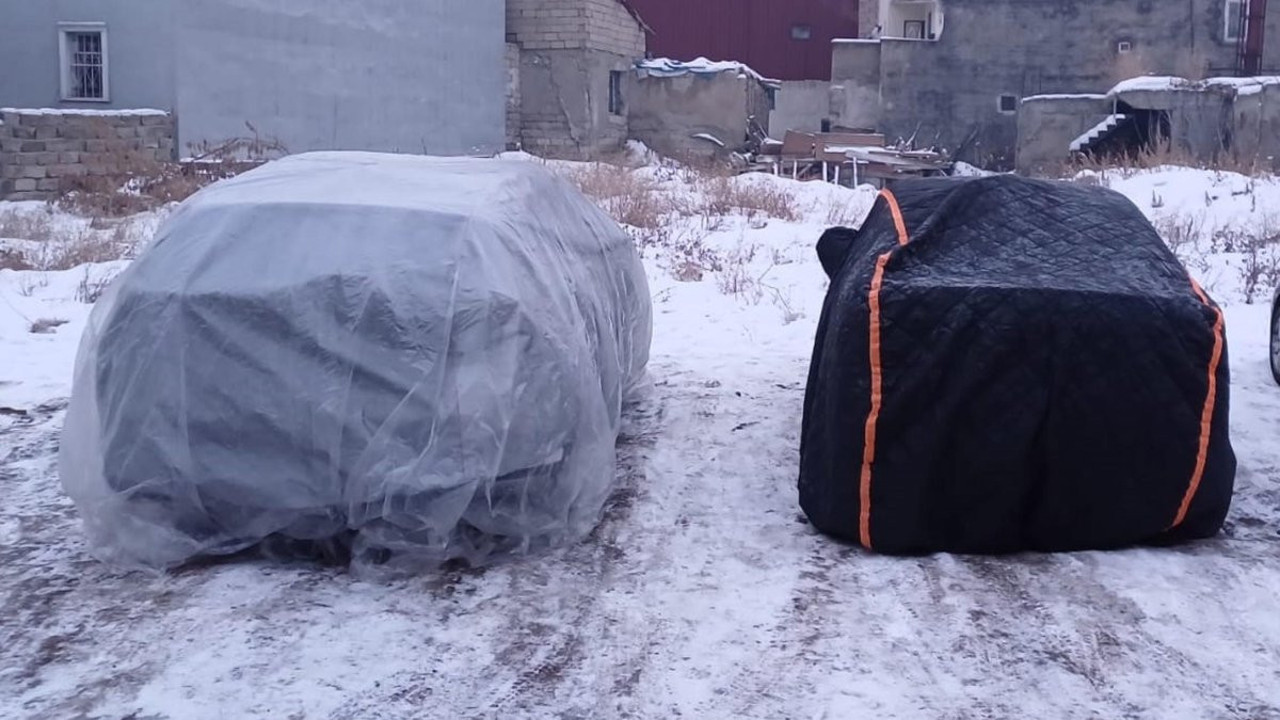 Vatandaşlar, araçlarını battaniye ve branda ile örtüp, dondurucu soğuklardan korumaya çalıştı.