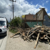 Karacaağaç Mahallesi Hacılar Sokak'ta yıkımı yapılan ahşap evin baca kısmı çöktü.