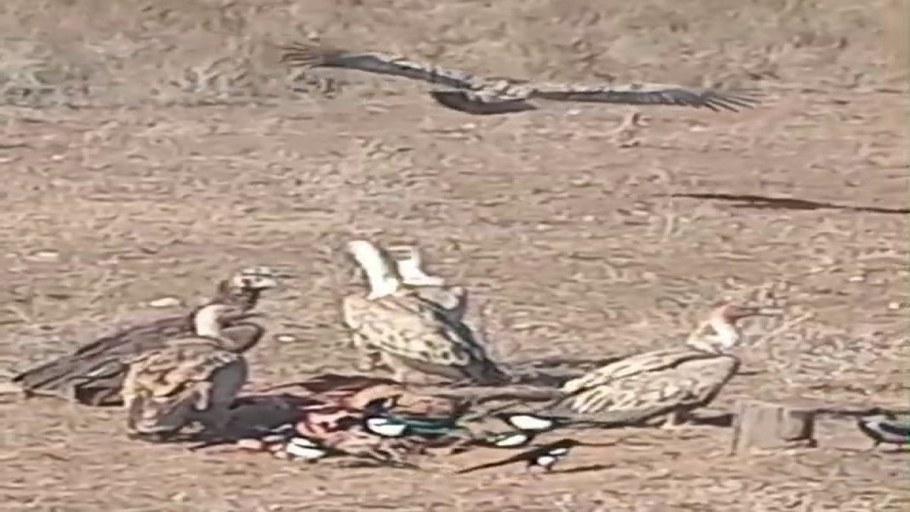Erzurum Oltu ilçesinde bir mobilya mağazasında çalışan Kurban Çaylak, Şenkaya ilçesine mobilya götürürken Paşalı Mahallesi'nde karşılaştığı ve bir leş üzerinde toplanan akbaba sürüsünü cep telefonu ile görüntüledi.