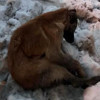 Köpeğin kaskatı kestiğini gören vatandaşlar, büyük üzüntü yaşadı. Akdeniz''in Sibiryası olarak da adlandırılan Göksun''da 2 yıl önce de soğuktan tilki donmuştu.