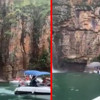 Brezilya’nın Minas Gerais eyaletinde yer alan turizm kenti Capitolio’da bir koyda bulunan teknelerin üzerine dev kaya parçası düştü.