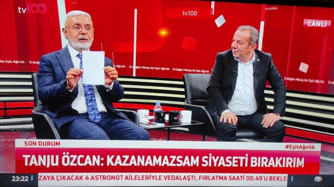 tv100’de katıldığı canlı yayında AKP’li Mehmet Metiner ile iddialaşan Özcan, seçimi kazanamazsa siyaseti bırakacağını söyledi.