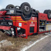 Niğde''deki tur midibüsü kazasına müdahaleye giden Aksaray Belediyesi itfaiye ekibini taşıyan araç, Güzelyurt ilçesinde devrildi.