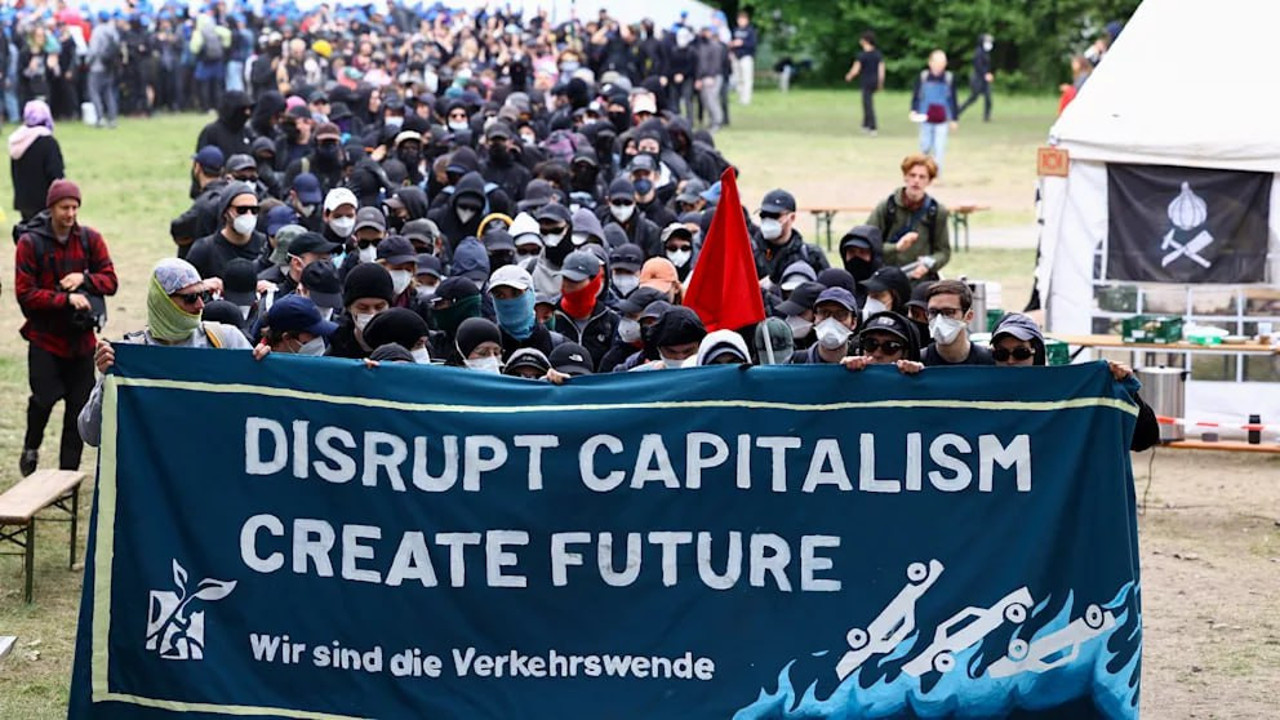 Almanyada bir grup sol tandaslı aktivist Tesla'nın Grünheide'de bulunan araba fabrikasının genişlemesine son verilmesini talebiyle baskın düzenledi. Filistin ve RAF bayraklarıyla yürüyüşe geçen grup fabrikaya yaklaşınca üzerinde "Kapitalizmi yıkın, geleceği yaratın!" sloganı atmaya başladı.