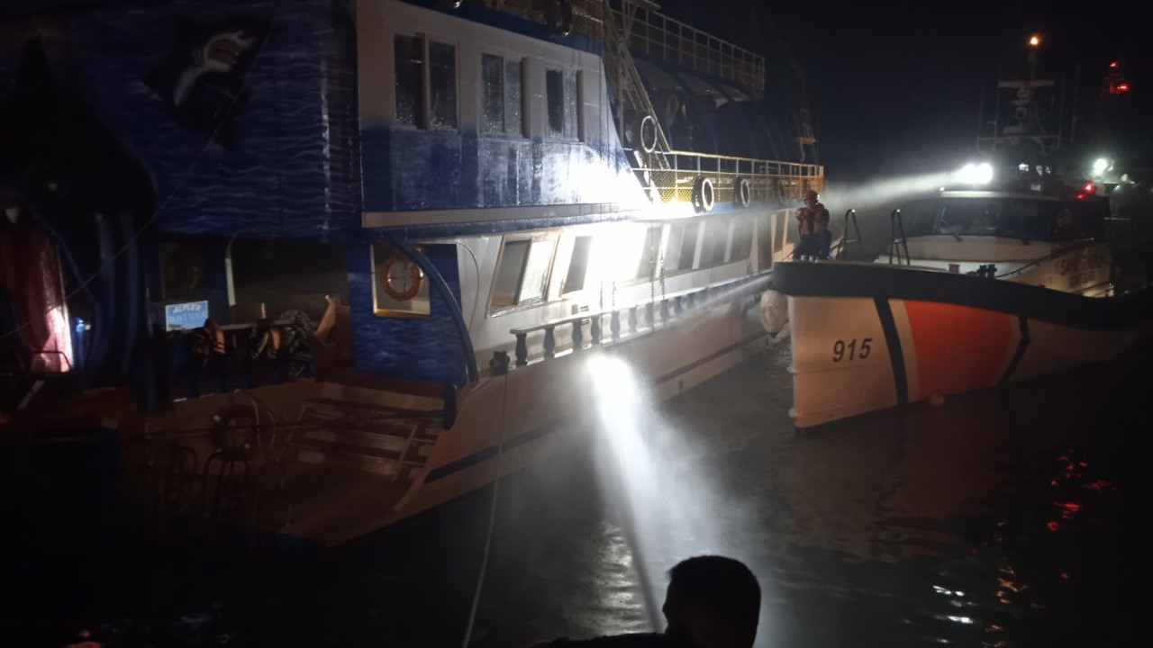 Tekne çalışanları yangına ilk müdahaleyi yaparken, alevler itfaiye ekiplerinin çalışmaları sonucunda söndürüldü.