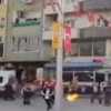 Şırnak'ın Cizre ilçesindeki olay Dörtyol mevkiinde meydana geldi. Bir apartmanın 1'inci katındaki dairede oturan kadın, alev alan piknik tüpünü balona çıkardı. Kadın, panikle aşağıdakilere seslenerek uzaklaşmalarını istedi. Bu sırada evdeki erkek de tüpü aşağıya kalabalığın arasına attı. Çevredekiler panikle kaçışırken, bir kişi kazağını çıkararak tüpün üzerine kapadı. Başka biri de su getirerek yangını söndürdü. O anlar cep telefonu kamerasıyla kaydedildi.
