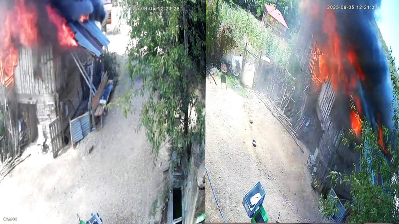 Ekiplerin hızla müdahalesiyle kontrol altına alınan yangında ev tamamen yandı. Evin alevlere teslim olduğu anlar güvenlik kamerasına yansıdı.