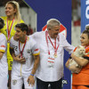 Kendisine şans getiren kedisi ile podyuma çıkan Selda''nın coşkusuna takım arkadaşları da eşlik etti.