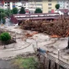 Bu arada selin geldiğini fark eden caddedekilerin sağa sola panik içinde kaçtıkları da görüntüye yansıdı.