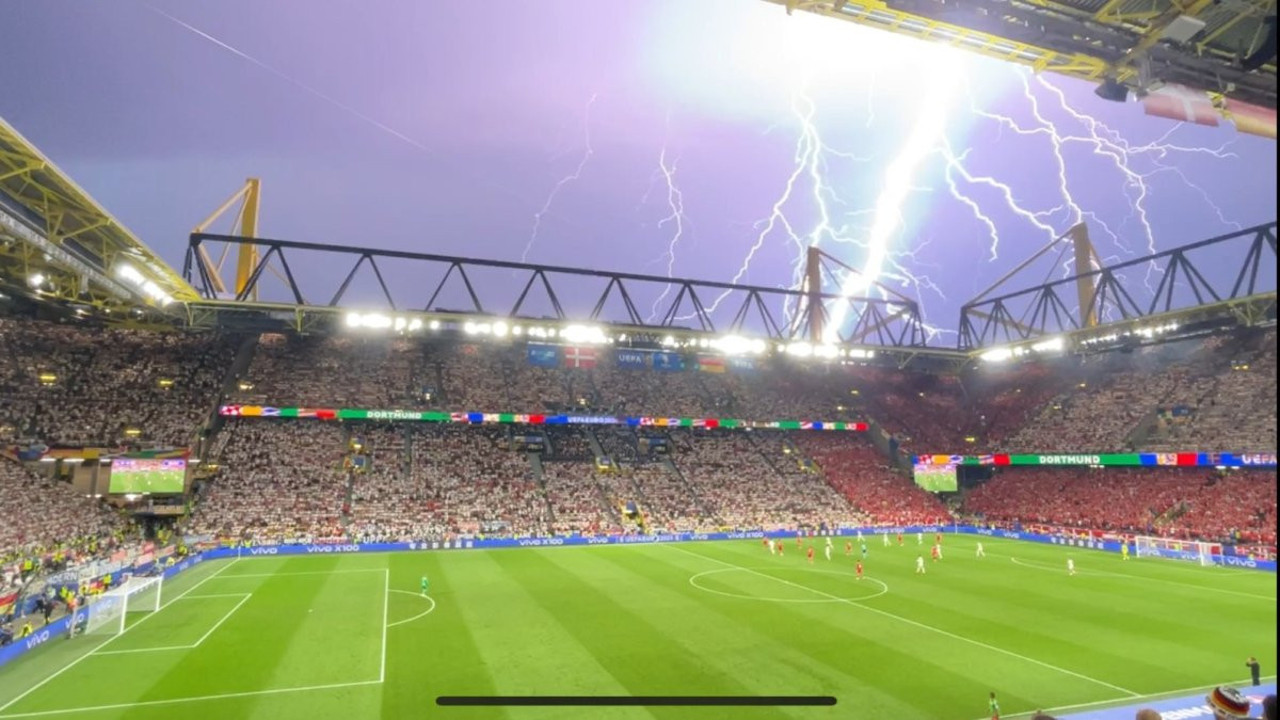 Son 16 turunda oynanan mücadelenin 35. dakikasında yoğun yağış ve dolu nedeniyle hakem Michael Oliver maçı durdurdu.