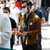 Gasilhane önünde kılınan cenaze namazında corona virüsü tedbirleri gereği sosyal mesafe kuralına uyulmazken, imamın uyarısı üzerine birer metre arayla saf tutularak cenaze namazı kılındı.