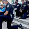 Polislerin diz çöküp af dilemelerinin ardından protestocular, gözyaşları içerisinde polislere eşlik etti.