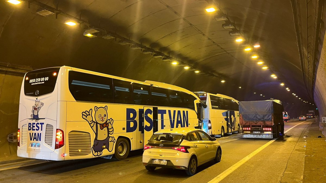 Kaza nedeniyle tünelin İstanbul yönünde ulaşımı tek şeritten sağlanıyor.