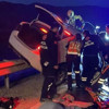 Çarpışmanın etkisi ile savrulan araçlardan biri bariyerlere saplandı.
